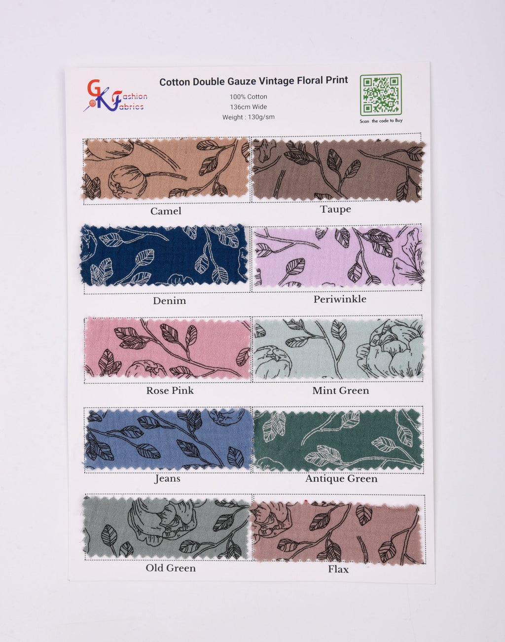 The Cotton Gauze Vintage Floral Print Fabric offers the perfect balance of softness, breathability, and style. Light and airy with a slightly crinkled texture, it has a beautiful natural drape that makes it ideal for warm-weather garments and year-round layering. The intricate vintage-inspired floral pattern adds a timeless charm, making it a wonderful choice for dresses, blouses, tunics, scarves, and shawls, as well as baby swaddles, lightweight blankets, and home décor accents such as curtains or table coverings.