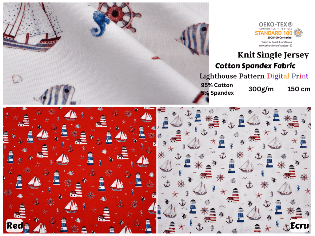 Knit Cotton Spandex Jersey Lighthouse Digital Print Fabric - 5052