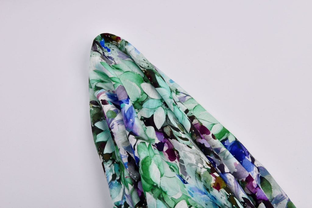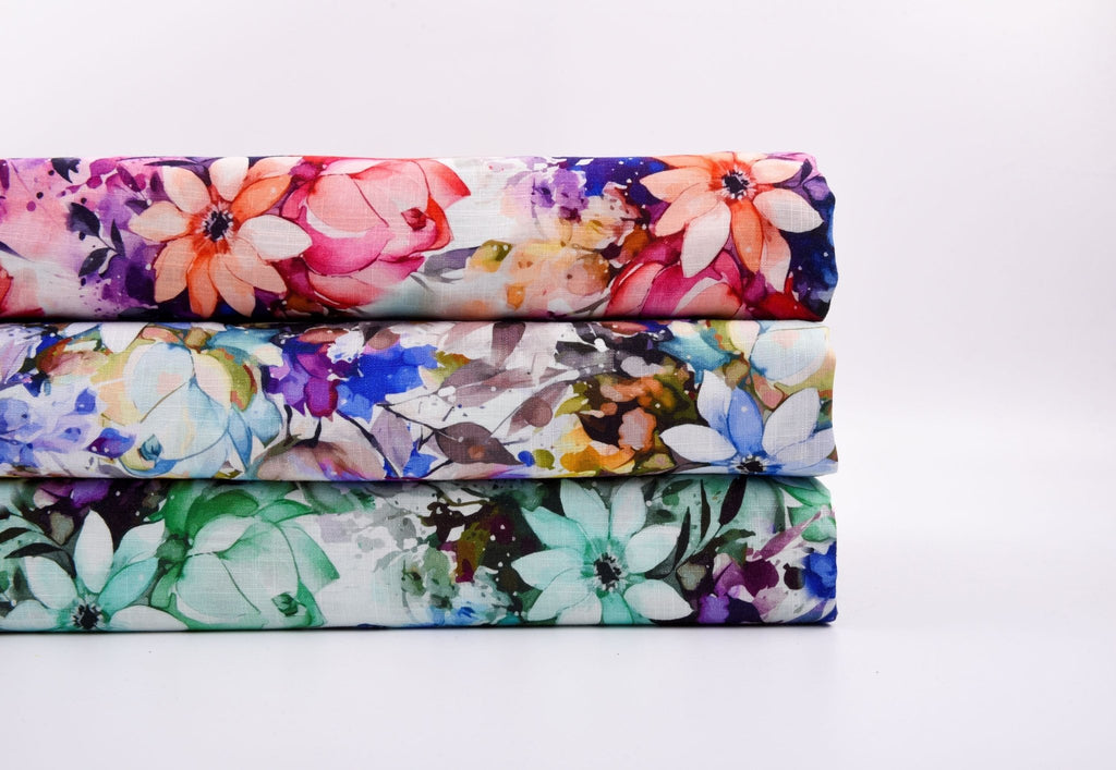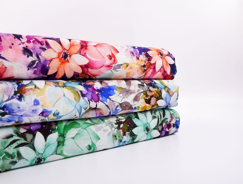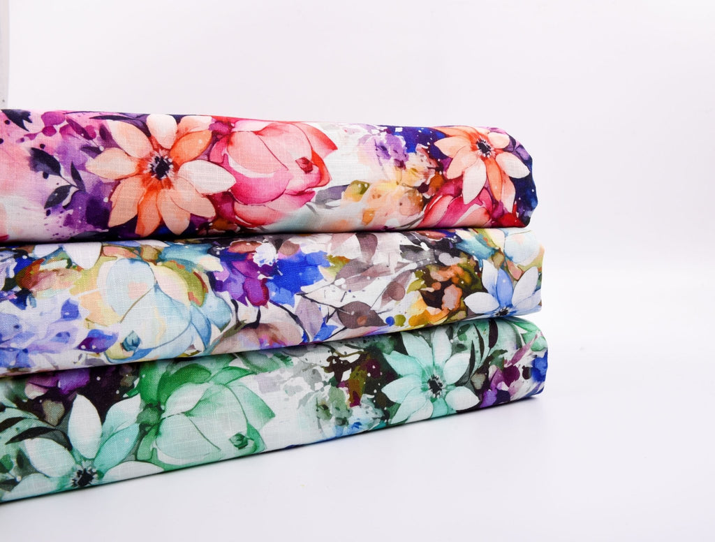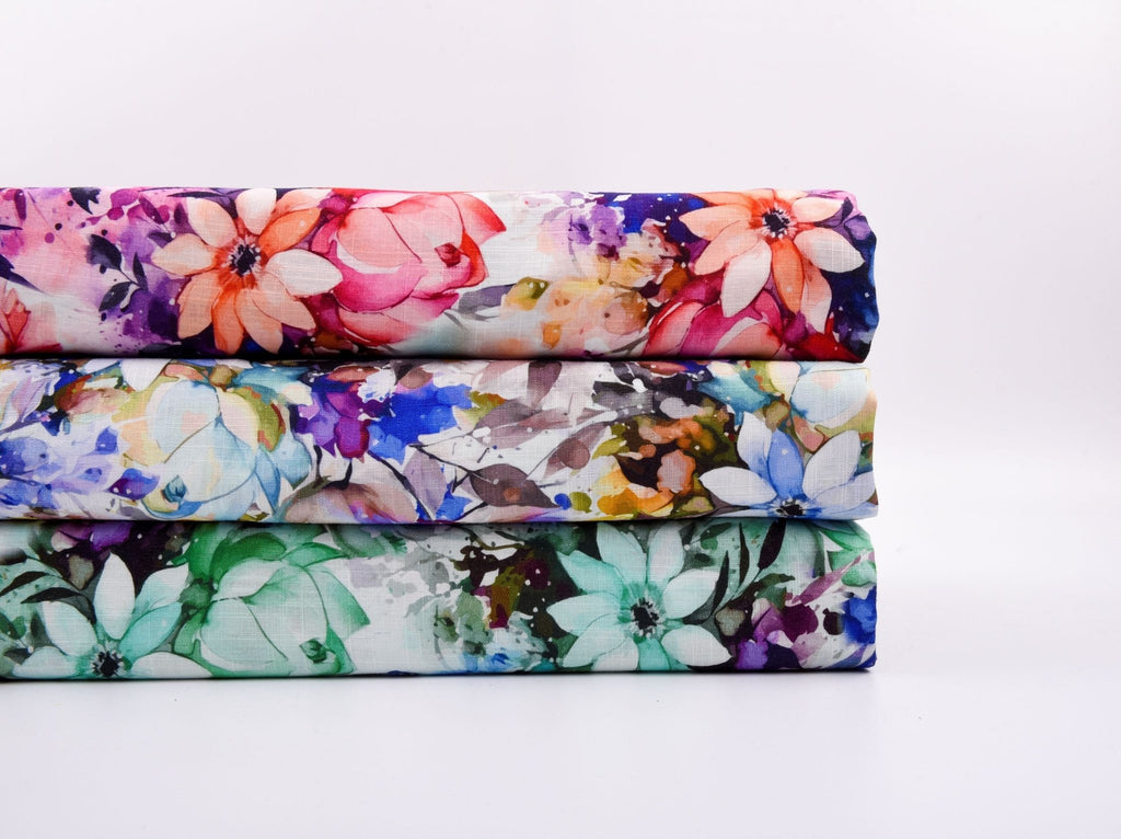 The Starry Blossom pattern captures the magic of a starlit garden, with bold, watercolor-style blooms scattered across a deep, atmospheric backdrop. Combining the light, breathable qualities of linen with the smooth softness of bamboo, this fabric offers a luxurious feel and an elegant drape.