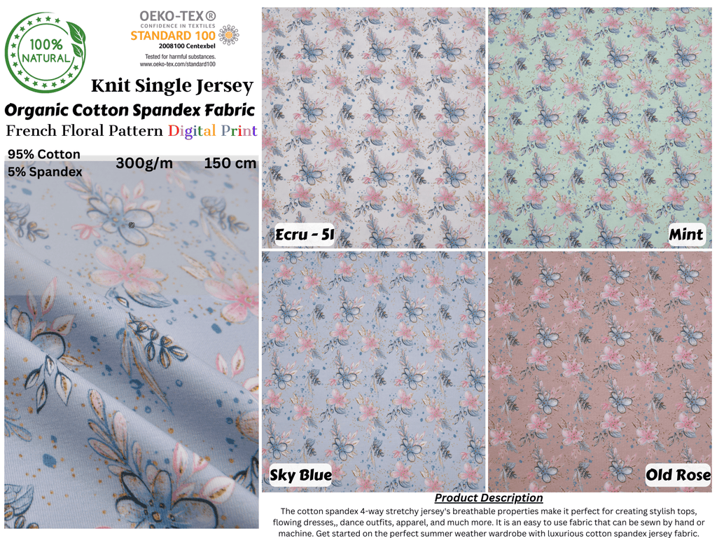 Knit Cotton Spandex Jersey French Floral Digital Print Fabric - 5064