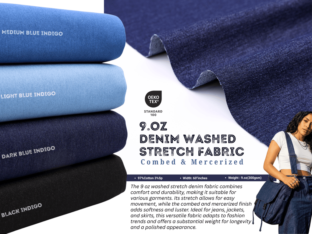 9oz Heavy Washed Stretch Denim Combed and Mercerized Fabric
