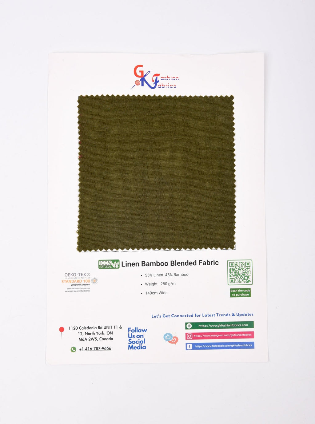 Our Linen Bamboo Natural Fabric blends 55% linen with 45% bamboo, offering the perfect combination of linen’s crisp texture and bamboo’s softness. This fabric is breathable, durable, and eco-friendly, making it a versatile choice for a wide range of garments and home décor projects.
