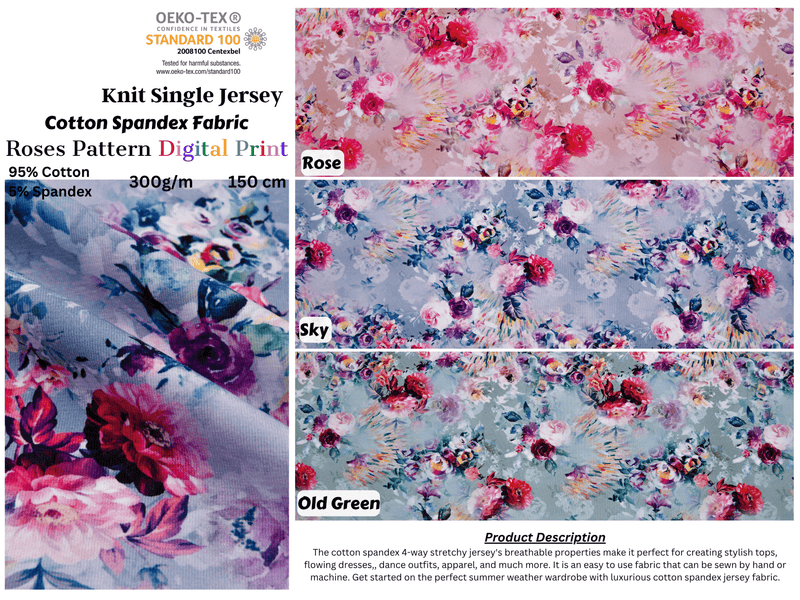 Knit Cotton Spandex Jersey Roses Digital Print Fabric - 6045