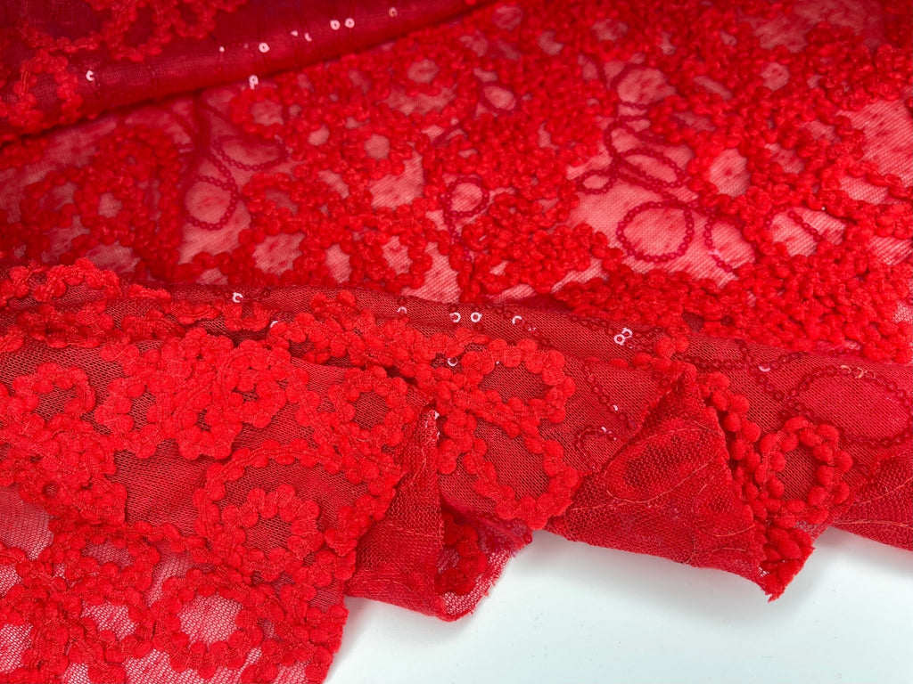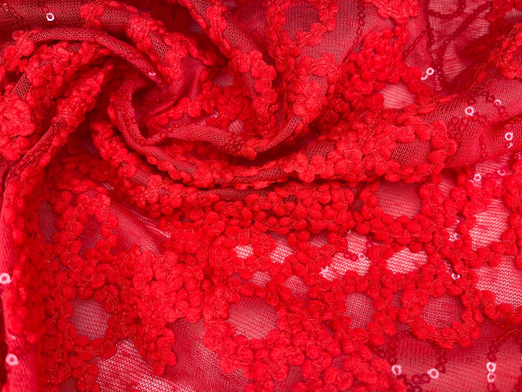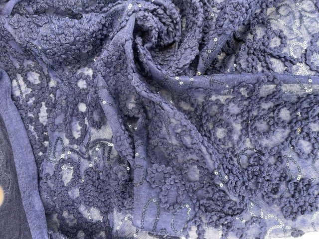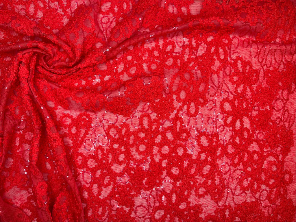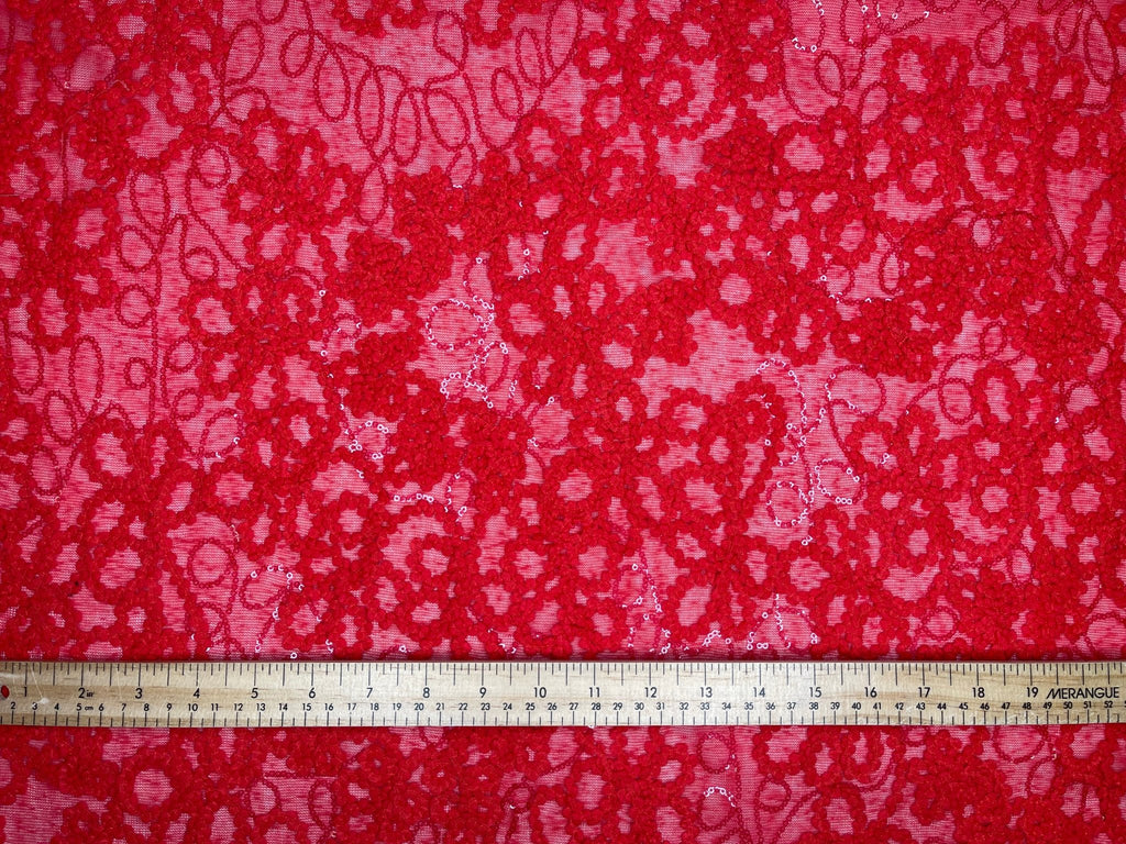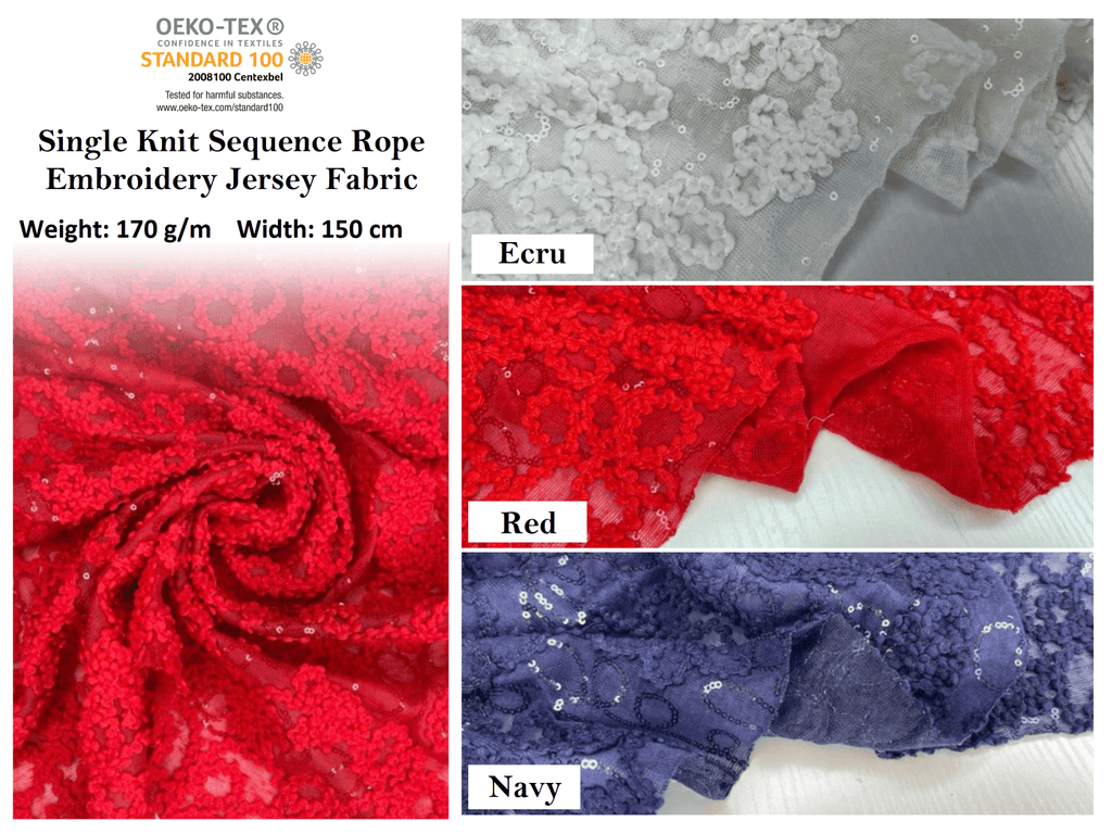 Knit Single Jersey Flamme Cord & Sequine Embroidery Fabric